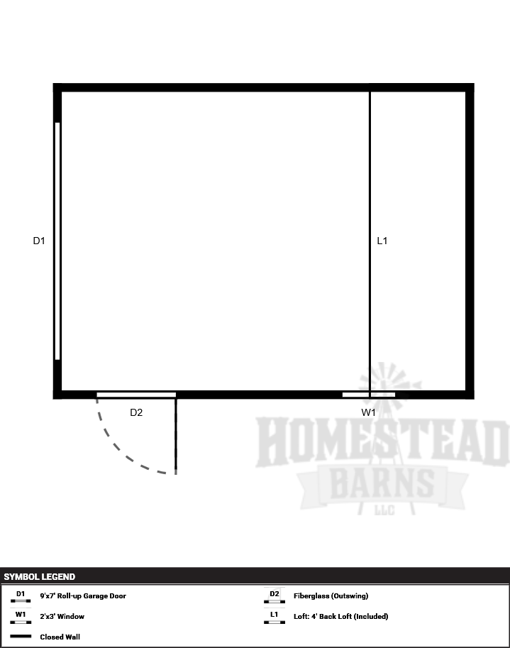 | Doors | 9'x7' Roll-up Garage Door, Fiberglass (Outswing), Hinges Right |