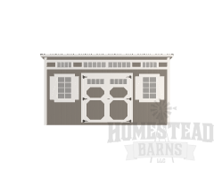 | Windows | 2'x3' Window with Shutters x2, 10×24 Transom x2, Color: White x4, 10×36 Transom x2 |